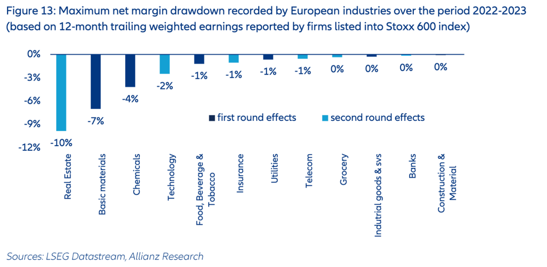 1、回顾2022至2023年期间,经济冲击通过不同渠道影响了欧洲各行业的利润率。受能源价格飙升等首轮效应直接冲击,能源密集型行业利润率大幅收缩,其中基础材料和化工行业净利润率分别下降了700个基点和400个基点。然而,冲击的次轮效应——即利率上升和需求疲软——造成了更广泛且更严重的影响:房地产行业因利率急升而遭受最沉重打击,净利润率最大降幅达到1000个基点;同时,科技行业也因其对资本支出和经济周期的敏感性而面临压力,净利润率下降了200个基点。
