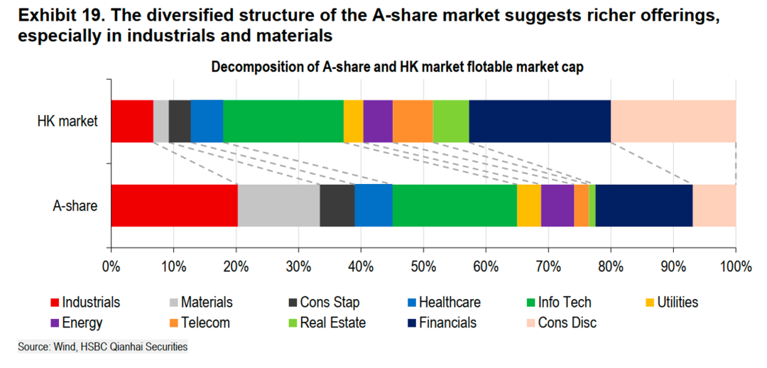9、A股与港股市场的行业构成存在显著差异,A股在工业和材料等实体经济领域的权重远高于港股。根据流通市值计算,工业与材料板块在A股市场中的合计占比接近30%,而在港股市场中则不足5%。与此相对,港股市场则高度集中于金融和信息技术行业,这两大板块合计占比超过50%,反映了其作为国际金融中心和科技公司上市地的市场定位。