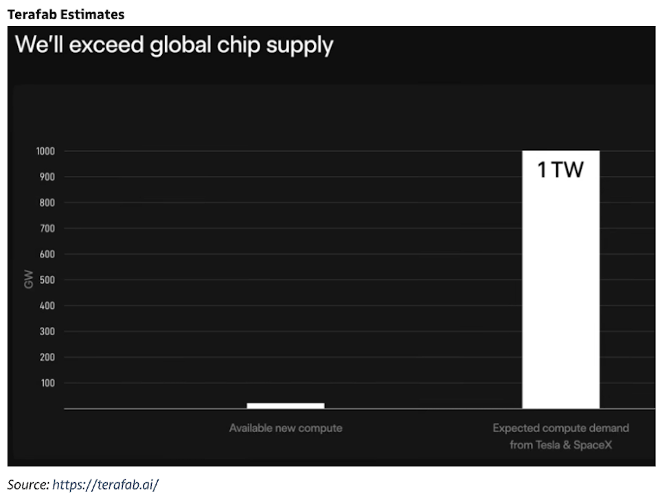 12、高盛:近期马斯克在关于 Terafab 的演讲中指出:“当前全球AI算力年总输出约为20GW;而地球上的其余所有算力(含所有地面晶圆厂产能)仅占我们需求的2%。我们希望现有供应链尽可能多产芯片,并愿采购全部产出——但这远远不够。我们必须自建Terafab,否则就拿不到芯片。我们需要芯片,因此我们将建造Terafab。”他还进一步推演:“我们必须突破计算的物理极限——我猜测,未来绝大多数算力将来自太空计算(space compute),因为我们受制于地球上的能源约束。事实上,随着时日推移,地面供电正变得愈发困难且昂贵;而在太空中,供电反而会越来越便宜、越来越容易。”市场预计,“太空数据中心”将成为长期投资者高度关注的主题。