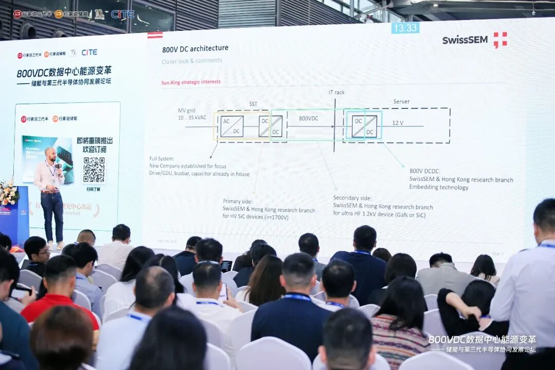 2026年4月10日,深圳——在“800VDC数据中心能源变革·储能与第三代半导体协同发展论坛”上,赛晶亚太半导体研发主管Nick Schneider发表了题为《固态变压器用2300V SiC MOSFET技术方案》的主题演讲,正式发布面向下一代数据中心能源系统的2300V碳化硅功率器件解决方案。
