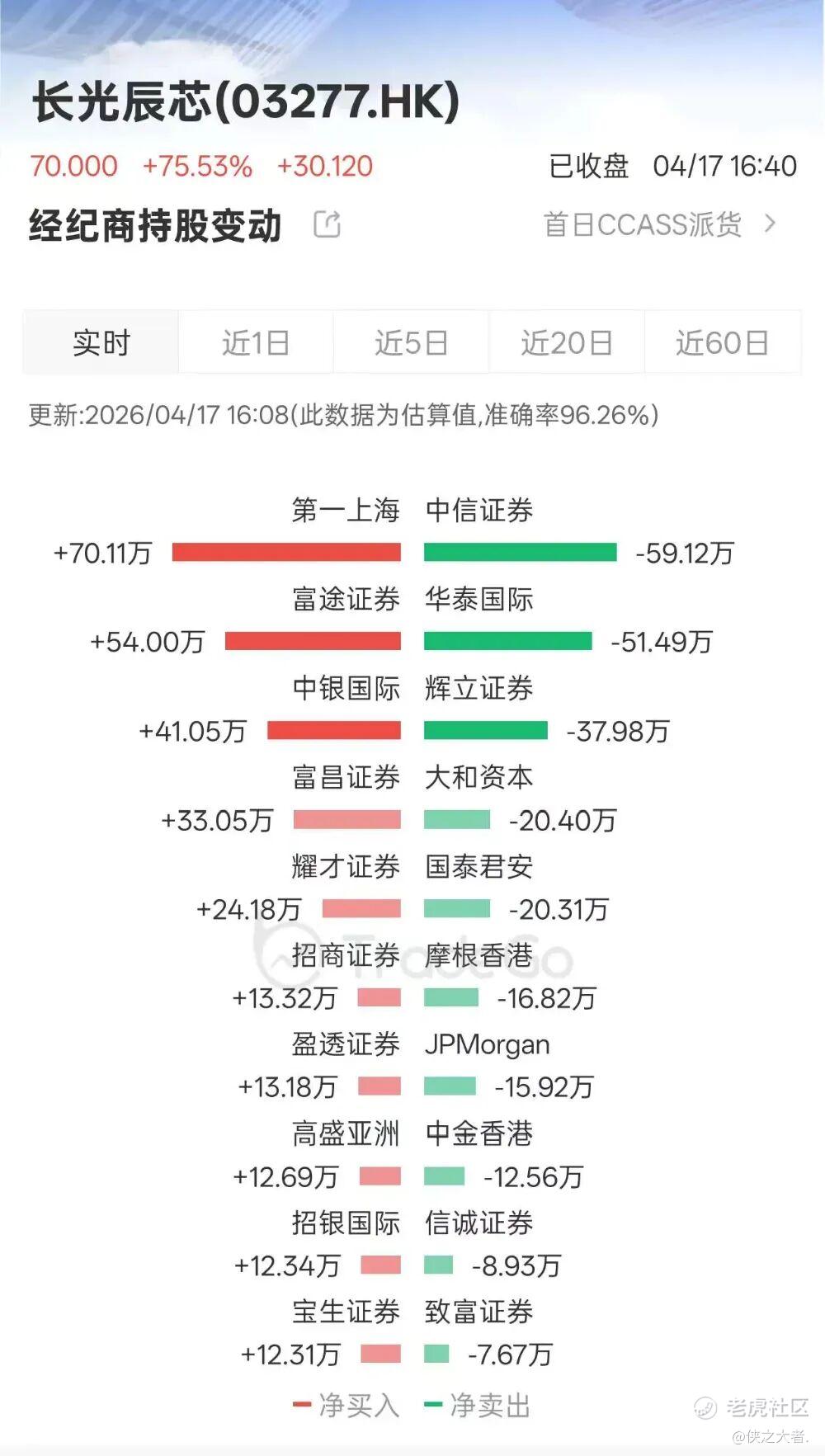 经纪商方面,首日净买入最多的是第一上海、富途证券、中银国际,分别净买入70.11万股、54.00万股、41.05万股;净卖出最多是的中信证券、华泰国际、辉立证券,分别净卖出59.12万股、51.49万股、37.98万股。
