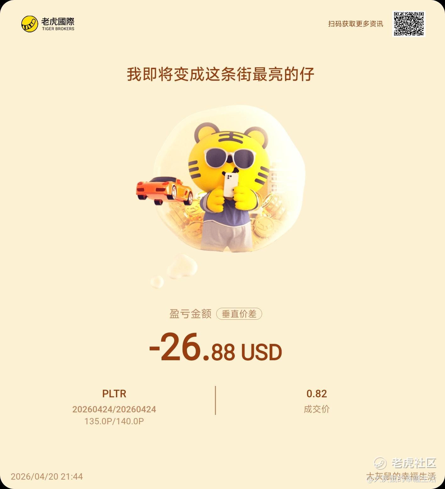 $Palantir Technologies Inc. 垂直价差 260424 PUT 140.0/PUT 135.0$ 刚开仓,保证金不足了,舍弃抛出