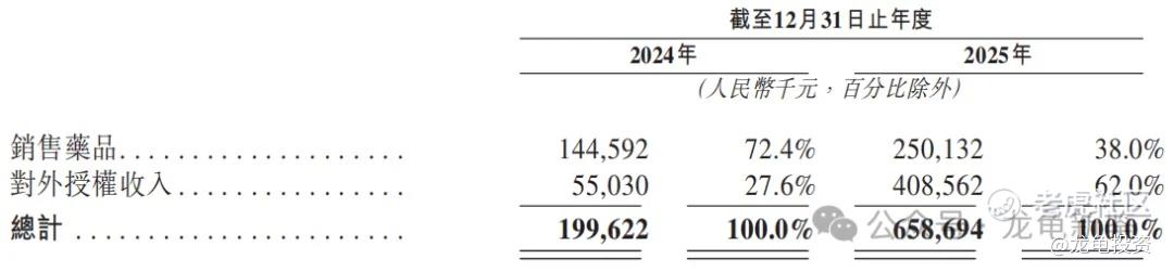 按业务板块划分,主要营收来源于销售药品和对外授权收入,按2025年收入计,分别营收2.5亿和4.09亿,详细收入明细见下图: