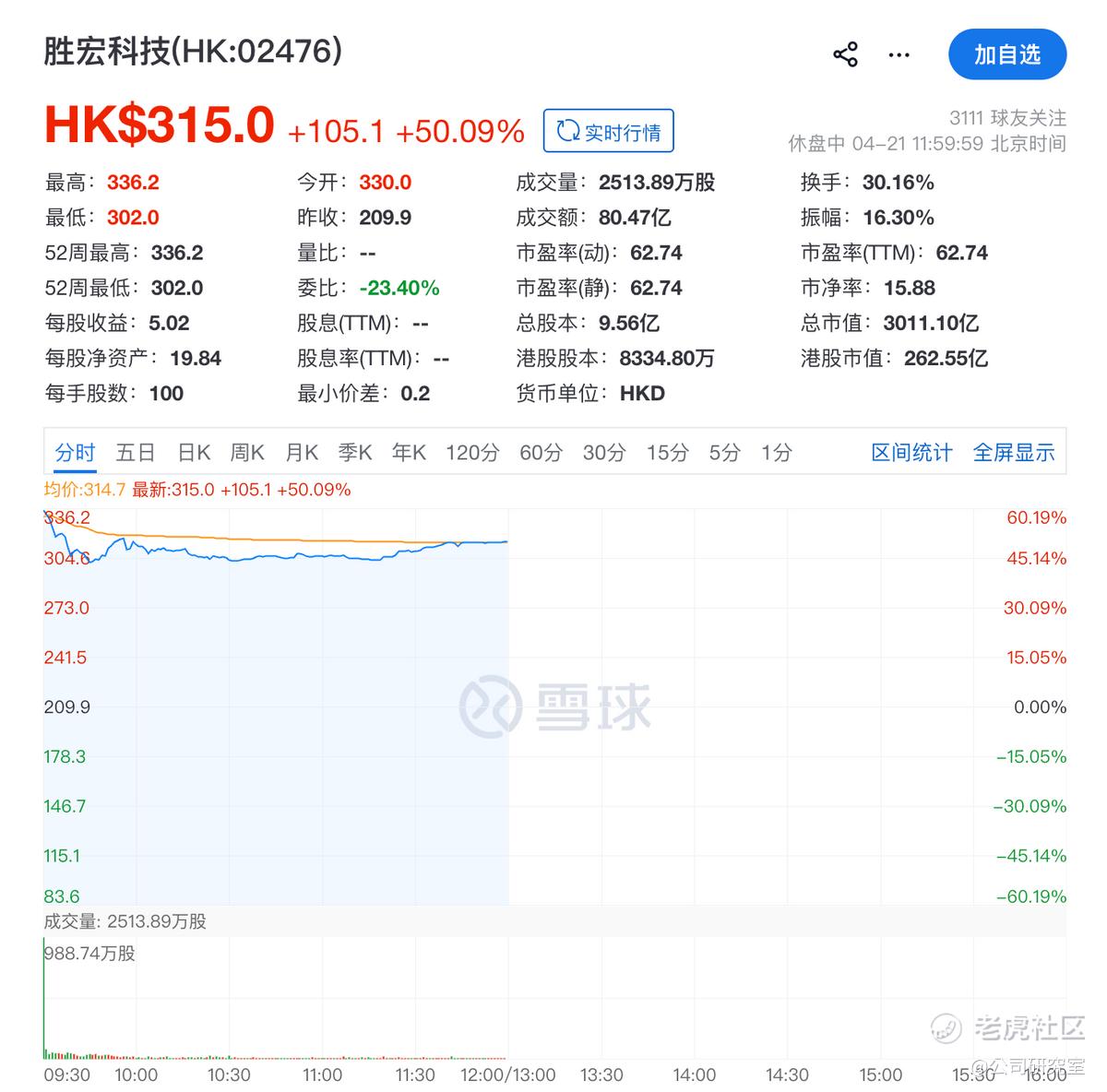 4月21日,全球AI算力PCB龙头胜宏科技正式登陆港交所主板。公司开盘即暴涨57.23%至330港元,盘中最高涨幅超60%。截至午间收盘,公司总市值突破3000亿港元,成为今日港股市场最耀眼的新股。