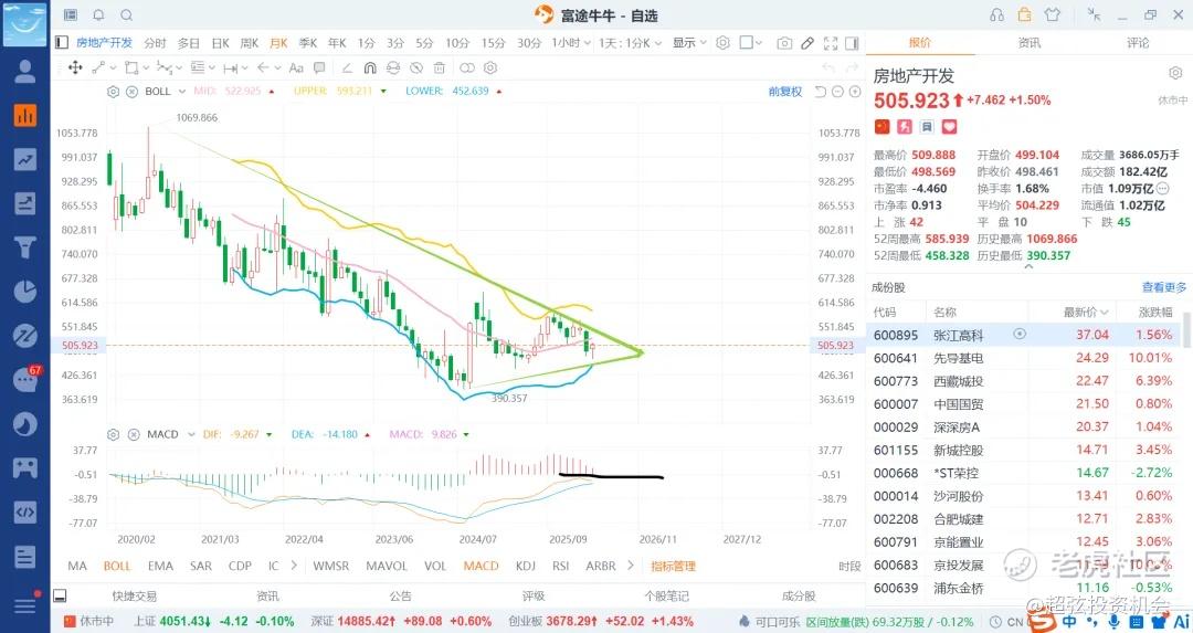 最近市场的走势比较异常,科技持续突飞猛进,但资源就跌的比较多了,金融也是半死不活,而创新药很妖,白酒也是跌跌涨涨,但关键是房地产开始异动了,一个是一线城市的成交活跃,二个是地产行业有些个股异动的涨停,这个就是异常那么就是需要注意了,尤其是万科业绩大洗澡等等,未来地产也就是一二线城市能看看了,但不是说现在要关注,就是梭哈的玩了,顶多配置一部分就好了,相对于其他的还可以,但也的做好继续跌个三五十,三五年不涨的情况,钱哪有那么好赚的呢,继续采用配置,底仓+网格化的轮动来做,就是需要熬,同时买跌不买涨,而且节奏感的低吸高抛降低成本,这个才是合理的左侧抄底模式了,可能会踏空部分行情,但重在安全和可持续性,不至于看错了完犊子的存在了,一个是头寸控制,二个是配置部分的底仓,三个是低吸高抛降低成本,只要不是太离谱了就没啥问题了。