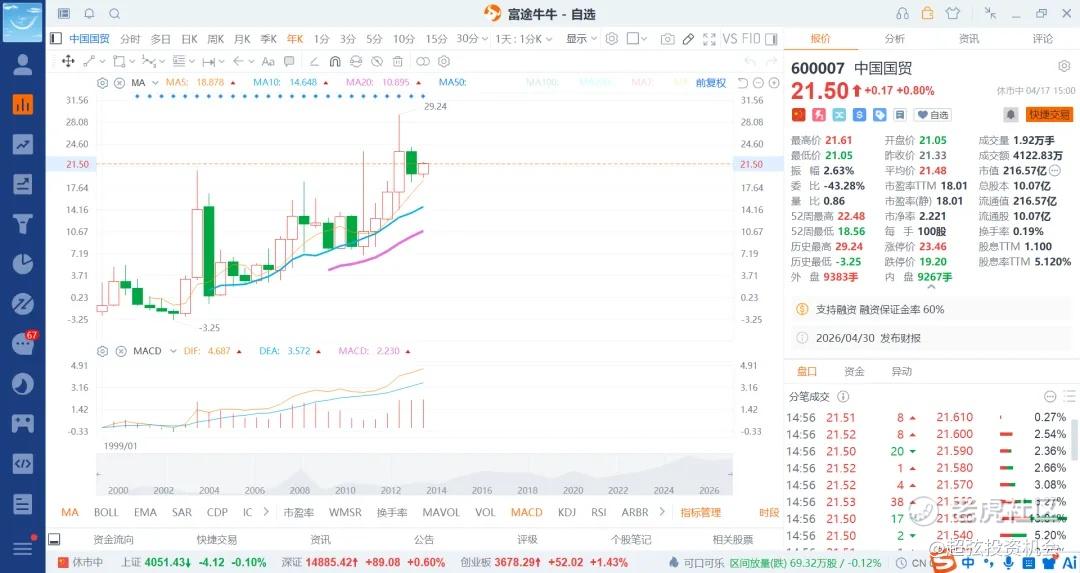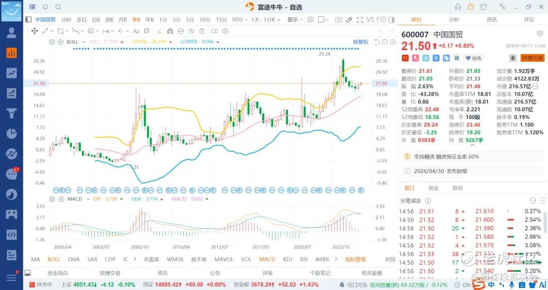 中国国贸,好位置在15-10附近,未来看到30/40问题不大,折算下来年化7-15-20%附近勉强也还行,反正配置模式,后续跌了反而是机会了,大概可以配置个5-15%头寸左右即可,慢慢的来吧。