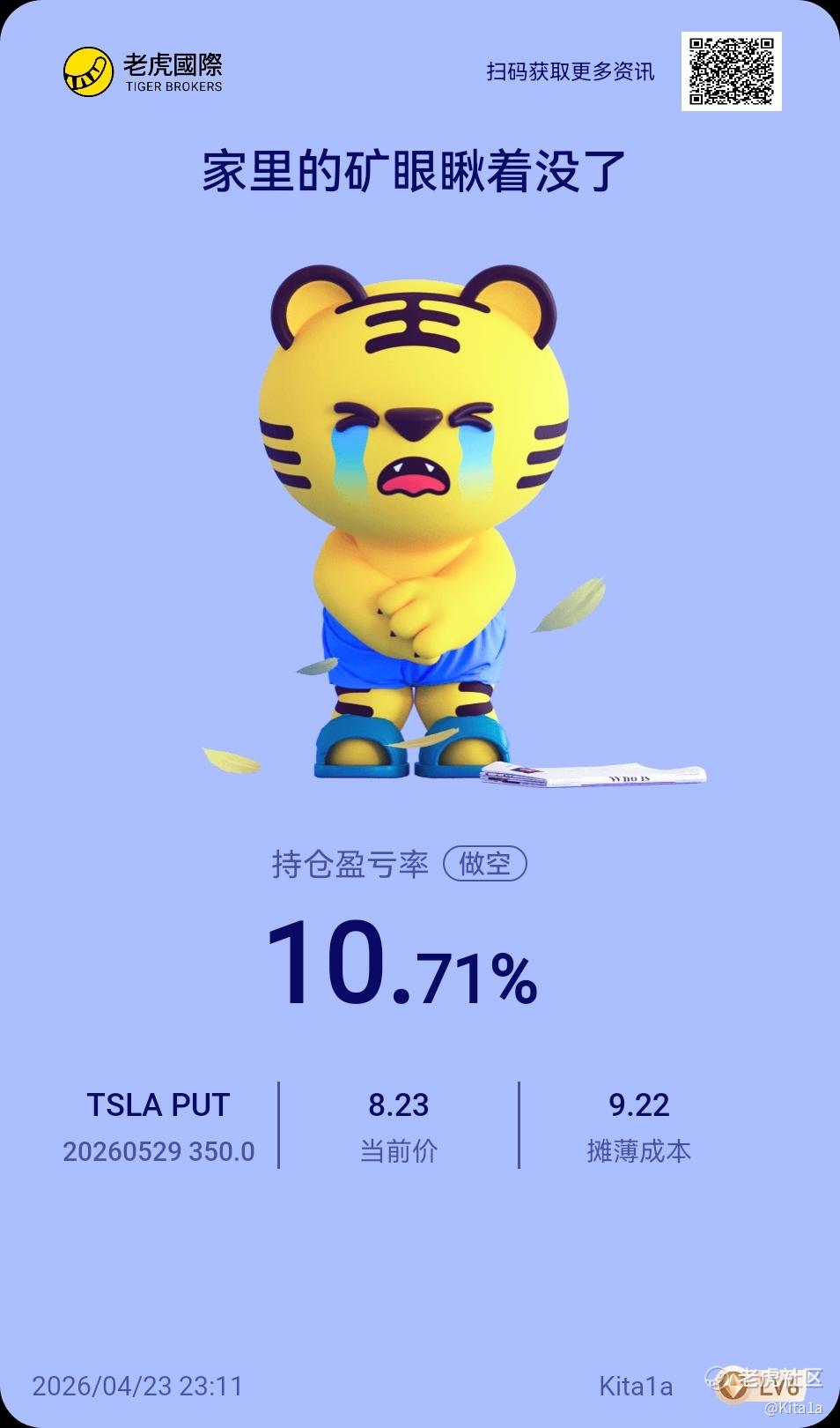 {"i18n":{"language":"zh_CN"},"data":{"magic":2,"id":556763526498048,"tweetId":"556763526498048","gmtCreate":1776957168434,"gmtModify":1776957180909,"author":{"id":4192178964309222,"idStr":"4192178964309222","authorId":4192178964309222,"authorIdStr":"4192178964309222","name":"Kita1a","avatar":"https://static.tigerbbs.com/fcbb5ec0f8aa53c53f347977db1fd9ae","vip":1,"userType":1,"introduction":"","boolIsFan":false,"boolIsHead":false,"crmLevel":6,"crmLevelSwitch":1,"currentWearingBadge":{"badgeId":"35ec162348d5460f88c959321e554969-3","templateUuid":"35ec162348d5460f88c959321e554969","name":"传说交易员","description":"证券或期货账户累计交易次数达到300次","bigImgUrl":"https://static.tigerbbs.com/656db16598a0b8f21429e10d6c1cb033","smallImgUrl":"https://static.tigerbbs.com/03f10910d4dd9234f9b5702a3342193a","grayImgUrl":"https://static.tigerbbs.com/0c767e35268feb729d50d3fa9a386c5a","redirectLinkEnabled":0,"hasAllocated":1,"isWearing":1,"stampPosition":0,"hasStamp":0,"allocationCount":1,"allocatedDate":"2025.09.25","exceedPercentage":"93.36%","individualDisplayEnabled":0},"individualDisplayBadges":[],"wearingBadges":[{"badgeId":"35ec162348d5460f88c959321e554969-3","name":"传说交易员","description":"证券或期货账户累计交易次数达到300次","smallImgUrl":"https://static.tigerbbs.com/03f10910d4dd9234f9b5702a3342193a","bigImgUrl":"https://static.tigerbbs.com/656db16598a0b8f21429e10d6c1cb033","isScarce":0,"effectEnabled":0,"redirectLinkEnabled":0,"redirectLinkValidityFrom":0,"redirectLinkValidityTo":9223372036854776000}],"fanSize":20,"starInvestorFlag":false},"themes":[{"themeId":"5bfad02ab61749c8bfe6573ac7bbe8a3","categoryId":"b76d3c59fc044df59779c041b25852a6","name":"晒晒更赚钱","type":0,"rnLink":"https://laohu8.com/RN?name=RNTheme&page=/theme/detail&rndata={\"themeId\":5bfad02ab61749c8bfe6573ac7bbe8a3}&rnconfig={\"headerBarHidden\": true}","description":"晒晒你的盈亏单,秀秀虎友们的实力!","image":"https://static.tigerbbs.com/347184265ee0be8c363259951f8033cb"}],"images":[{"img":"https://static.tigerbbs.com/dc8f2c5580e114bd6524906246ebf32d","width":"954","height":"1620"},{"img":"https://static.tigerbbs.com/27e9ecaf584b3b84a7418a5f324a6ac3","width":"1080","height":"1440"}],"coverImages":[{"img":"https://static.tigerbbs.com/dc8f2c5580e114bd6524906246ebf32d","width":"954","height":"1620"}],"title":"","html":"<html><head></head><body><p><a href=\"https://laohu8.com/OPT/TSLA 20260529 350.0 PUT\">$TSLA 20260529 350.0 PUT$ </a> </p><img src=\"https://static.tigerbbs.com/dc8f2c5580e114bd6524906246ebf32d\" tg-width=\"954\" tg-height=\"1620\"><img src=\"https://static.tigerbbs.com/27e9ecaf584b3b84a7418a5f324a6ac3\" tg-width=\"1080\" tg-height=\"1440\"></body></html>","htmlText":"<html><head></head><body><p><a href=\"https://laohu8.com/OPT/TSLA 20260529 350.0 PUT\">$TSLA 20260529 350.0 PUT$ </a> </p><img src=\"https://static.tigerbbs.com/dc8f2c5580e114bd6524906246ebf32d\" tg-width=\"954\" tg-height=\"1620\"><img src=\"https://static.tigerbbs.com/27e9ecaf584b3b84a7418a5f324a6ac3\" tg-width=\"1080\" tg-height=\"1440\"></body></html>","text":"$TSLA 20260529 350.0 PUT$","highlighted":1,"essential":1,"paper":1,"likeSize":1,"commentSize":0,"repostSize":0,"favoriteSize":0,"link":"https://laohu8.com/post/556763526498048","repostId":0,"isVote":1,"tweetType":1,"viewCount":238,"commentLimit":10,"likeStatus":false,"favoriteStatus":false,"reportStatus":false,"symbols":["TSLA","TSLA 20260529 350.0 PUT"],"verified":2,"subType":0,"readableState":1,"langContent":"EN","currentLanguage":"EN","warmUpFlag":false,"orderFlag":false,"shareable":true,"causeOfNotShareable":"","featuresForAnalytics":["晒单贴"],"commentAndTweetFlag":false,"andRepostAutoSelectedFlag":false,"upFlag":false,"length":22,"optionInvolvedFlag":true,"xxTargetLangEnum":"ORIG"},"commentList":[],"hasMoreComment":false,"orderType":2}