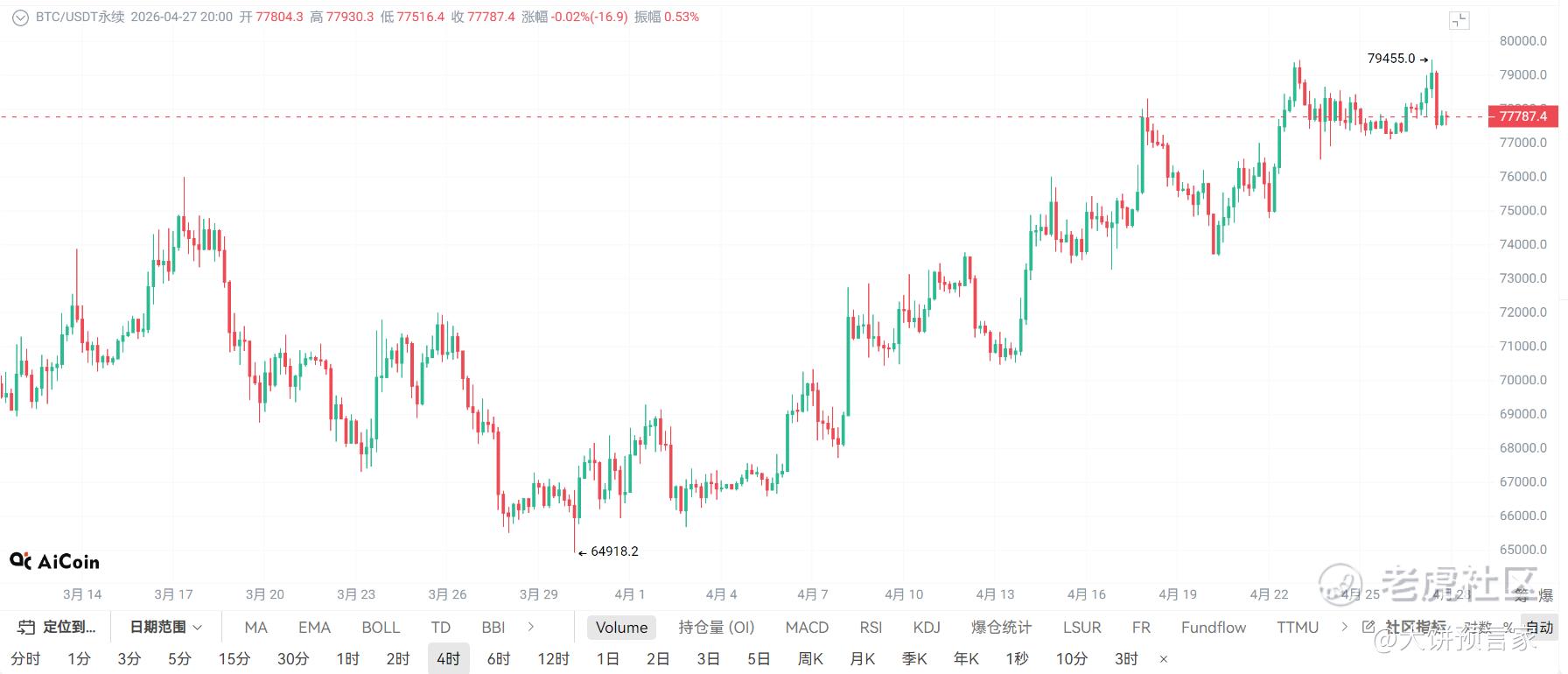 不过这次的走势,涨的很犹豫,并不干脆。而且到了7.8万这个位置,遇到了强阻力,有点涨不动了的感觉,更像是上涨末期。
