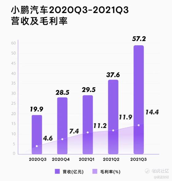 财报显示,第三季度,小鹏汽车的总收入为57.2亿元,环比增长52.1%,同比大增187.4%;毛利率为14.4%,同比增长3.2%。业绩相当亮眼。