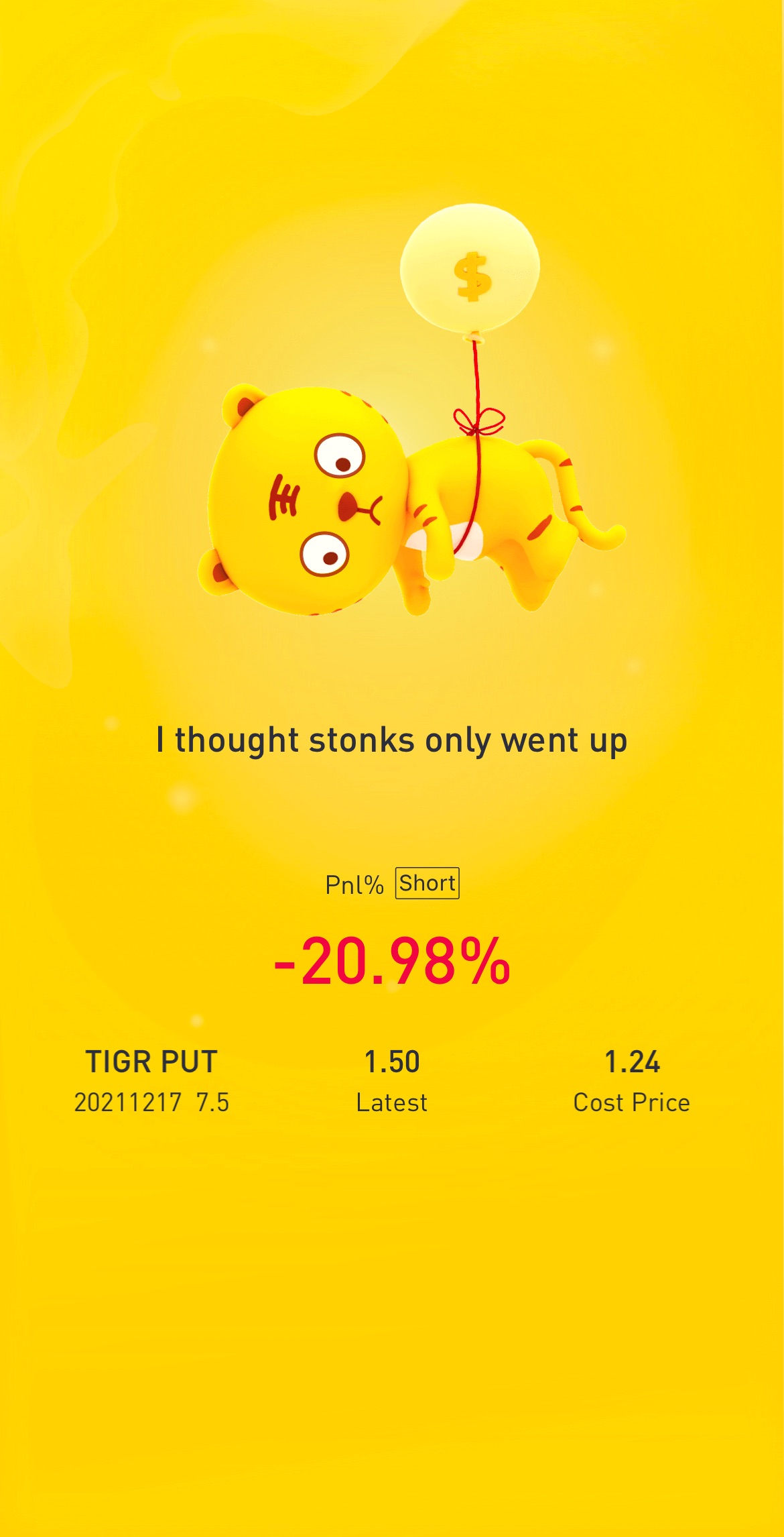 $TIGR 20211217 7.5 PUT$ $Tiger Brokers(TIGR)$Tiger is roaring back!