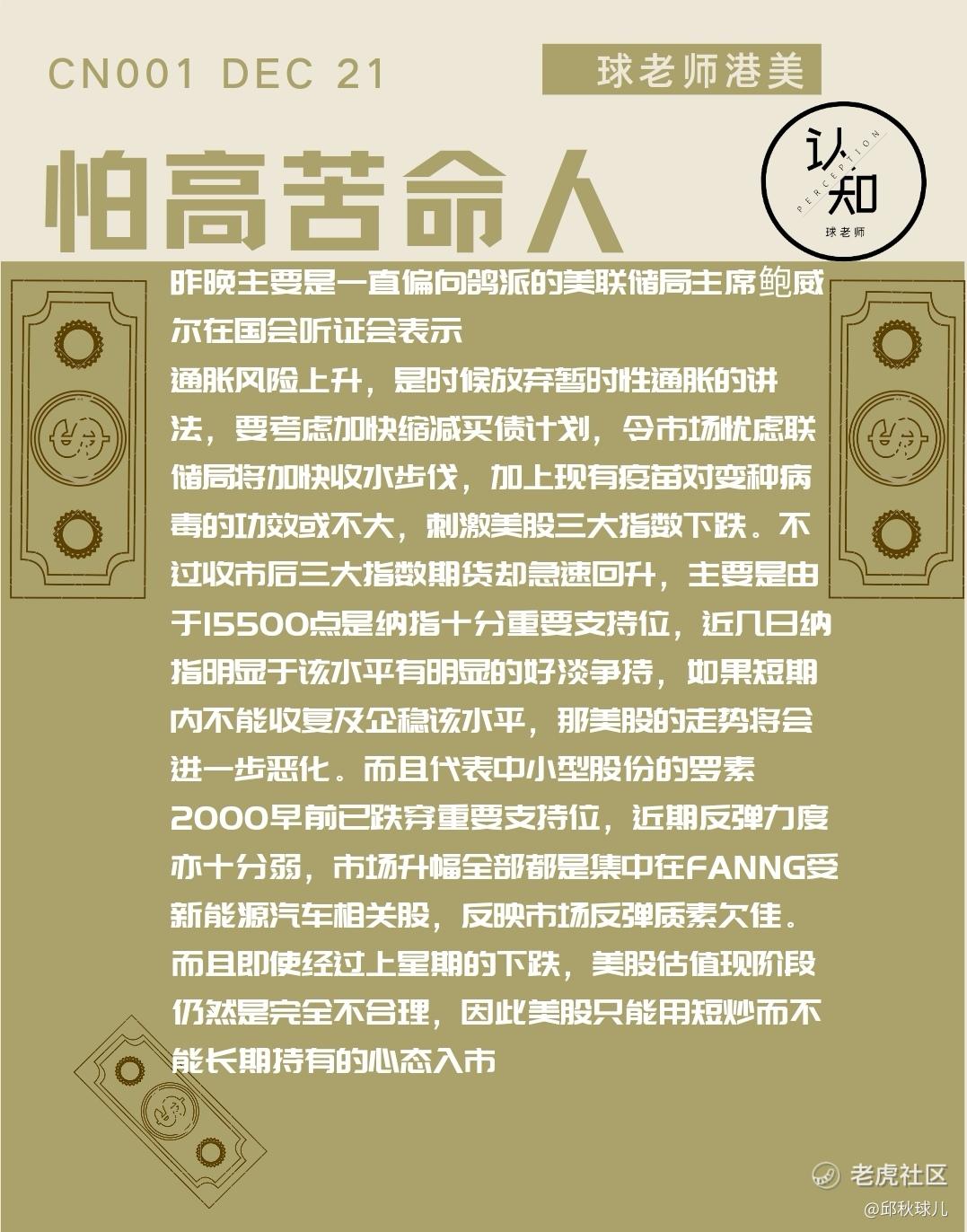 01 Dec 2021 | 鲍威尔意外转鹰带跌美股,港股短期反弹料受阻24000$腾讯控股(00700)$$特斯拉(TSLA)$$苹果(AAPL)$@Tiger Stars