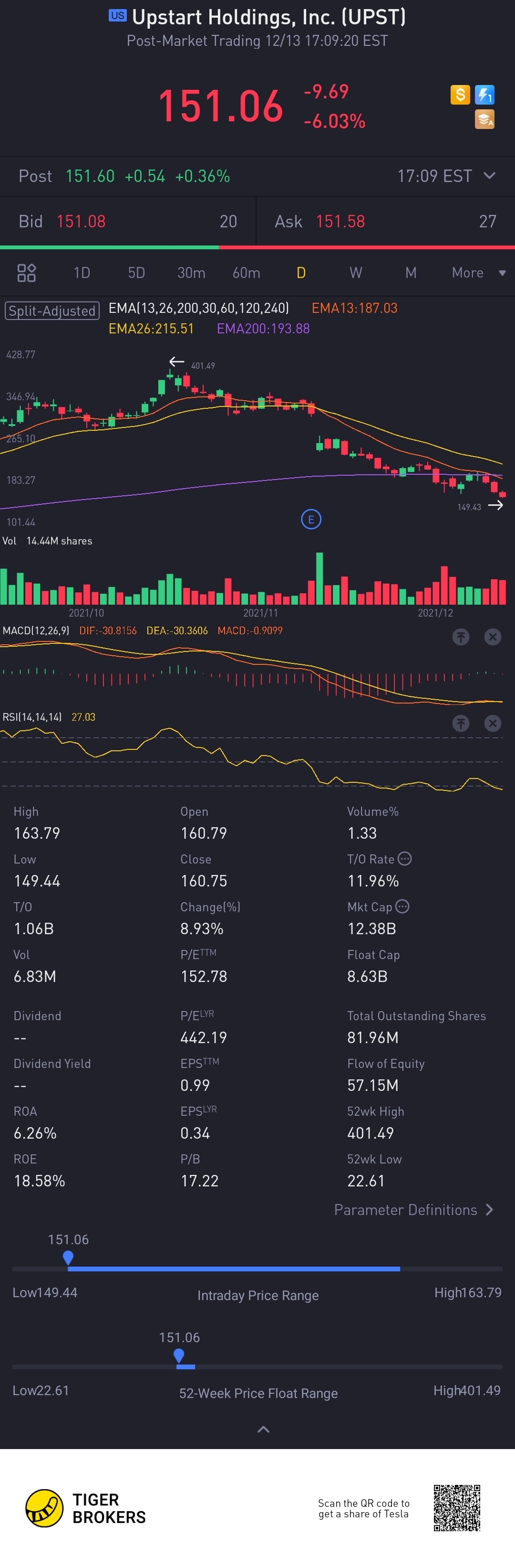 $Upstart Holdings, Inc.(UPST)$ from 401 to 151, still seems like continue to go down[思考]
