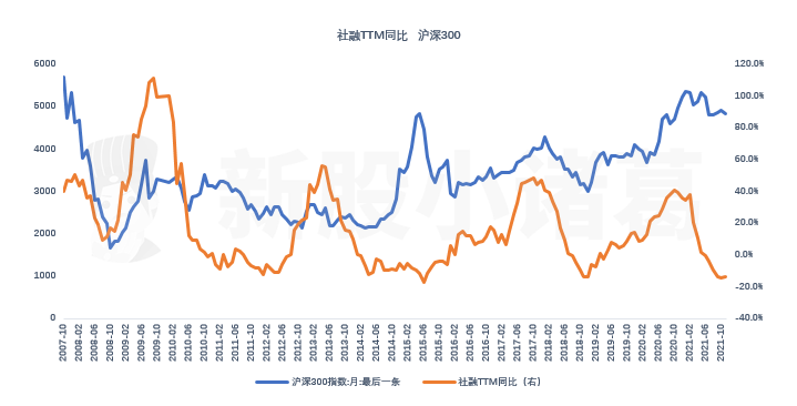 ”稳”是明年的重心,4700的工作会议文件中出现了25次。2021年是政策执行过度的一年,地产、教育、互联网等,执行过度的坏处就是2021年很难受,好处就是后期有比较大的预期修复空间。地产政策的过度运用把去年的整体社会融资总额带动下来,同时也给到了市场非常好的机会,在低位,才会有机会。目前社融已经接近底部,进一步下跌空间不大,2022年比2021年值得期待。社融的增量以前主要来源于地产,未来的增量预计会从多角度提供,降低地产增量信贷在其中的占比。新的方向如:绿电及新能源企业、消费、科技、专精特新等。