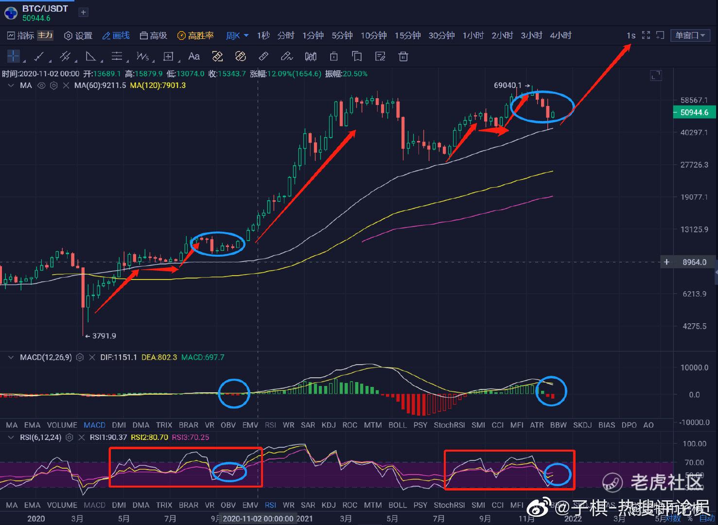 以上分析基于K线 基本大趋势判断 基于坚信大牛还在所得出的结论,子棋再次重申作为BTC周期典型牛市的最后一轮不会表现这么差,不会这么快草草结束,正如之前所说这轮牛市走的慢 走的稳 走的缓 走的长而已,拭目以待!