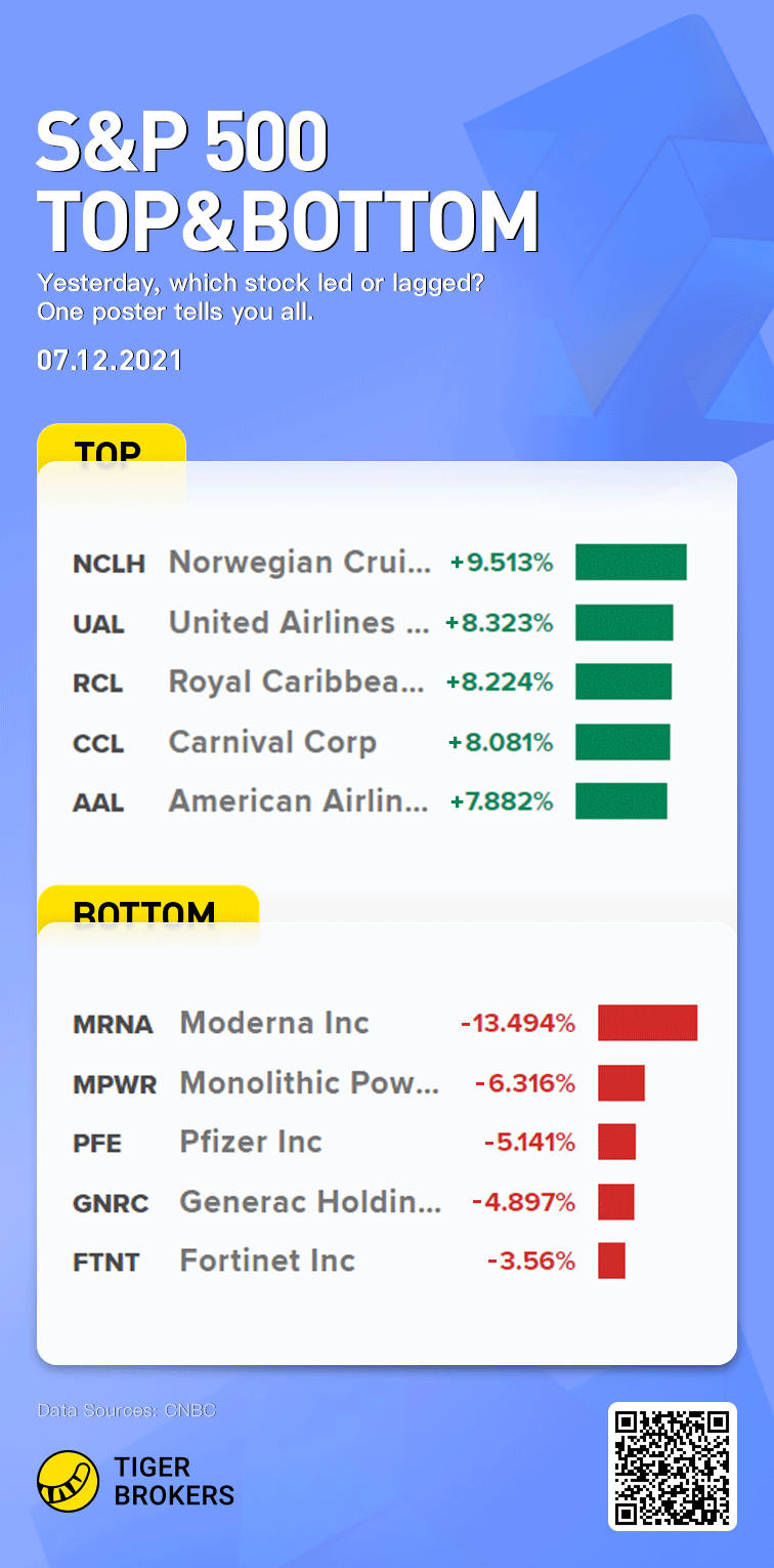 $Norwegian Cruise Line(NCLH)$ $United Continental(UAL)$ $Royal Caribbean Cruises(RCL)$ $Carnival(CCL)$ $American Airlines(AAL)$ $Moderna, Inc.(MRNA)$ $Monolithic Power(MPWR)$ $Pfizer(PFE)$ $Generac(GNRC)$ $Fortinet(FTNT)$