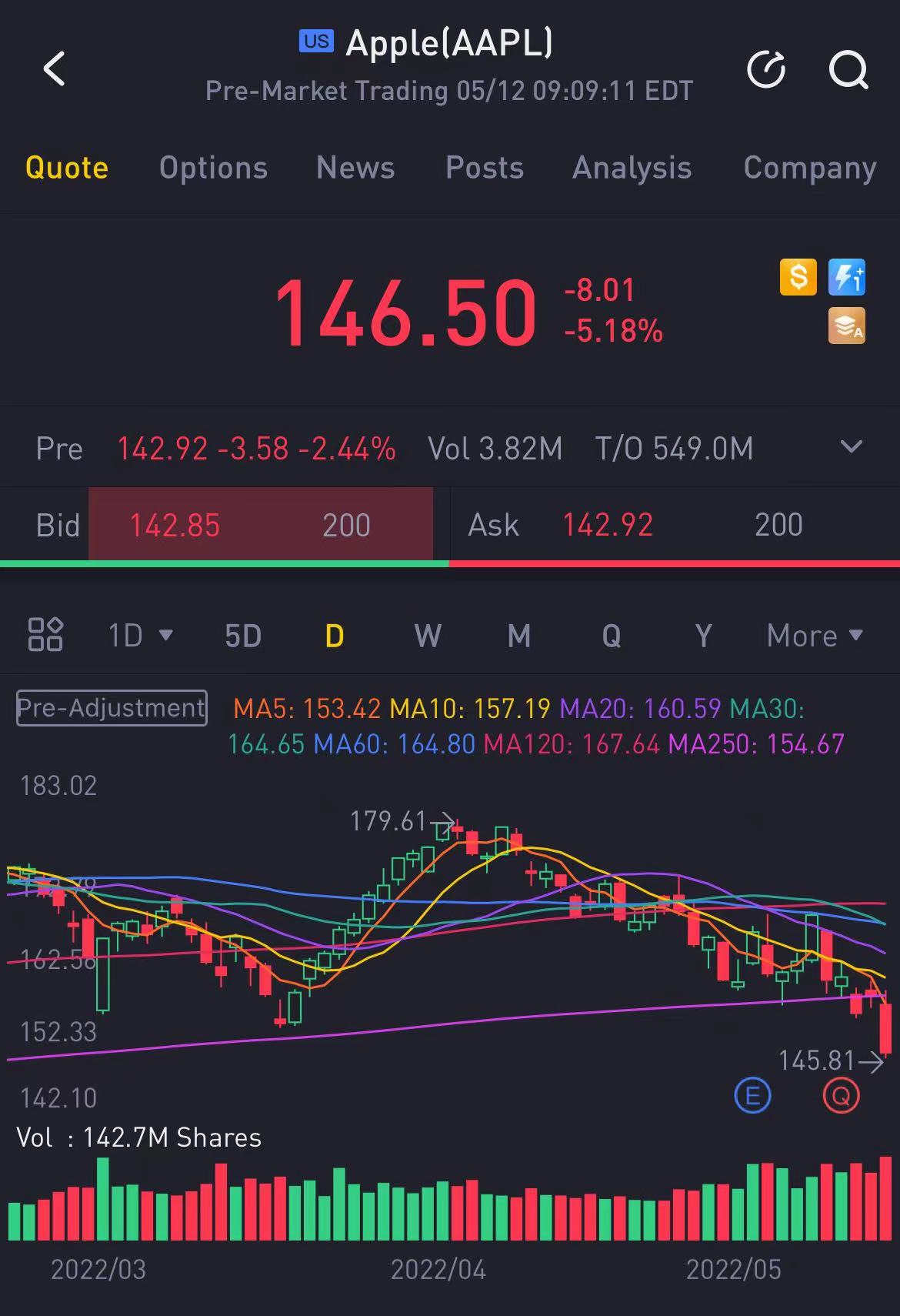 今日盘前巨头们继续下跌,毫无反弹的意思。虽然我之前买了vix put,不过看来这笔订单想获得盈利还需要再等一阵。关于昨天的大跌有两种说法,一个是CPI数据不尽如人意,虽然同比下降了但核心通胀并没有减缓,没能达到预期目标,所以美联储或在之后考虑更加激进的加息。