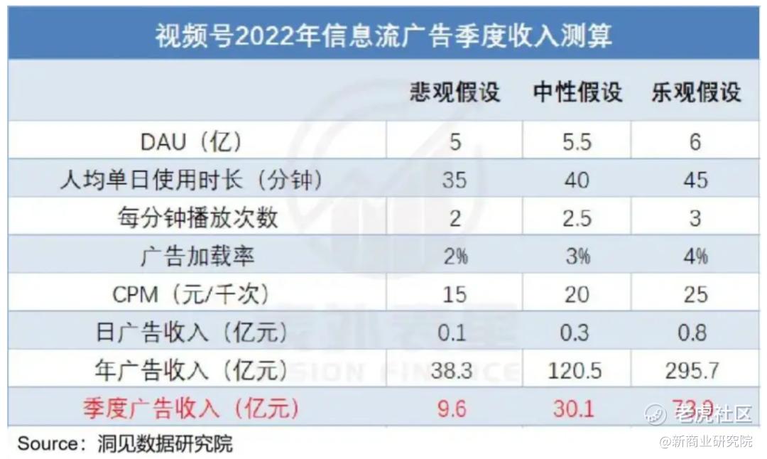 在腾讯2021年全年财报会上,腾讯透露将在2022年测试和优化视频号中的短视频广告,其或将是视频号最大的收入来源。
