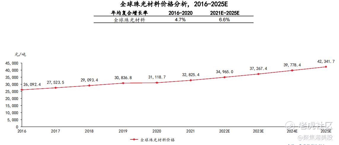 近年来,随着全球珠光材料研发技术的改良以及下游市场需求增长,珠光材料逐步得到高端化市场的认可与青睐,产品结构以及价格体系不断优化,利润率稳步提升。同时,随着未来珠光材料制造工艺的不断改良,合成云母研发制造技术的不断优化,全球珠光材料产品质量、利润率将会不断提升,在汽车、化妆品珠光材料等领域的渗透率将会不断提升,进而推动珠光材料价格的提升。弗若斯特沙利文预计,全球珠光材料价格将于2025年达42,341.7亿元人民币,2022年至2025年年均复合增长率达6.6%。