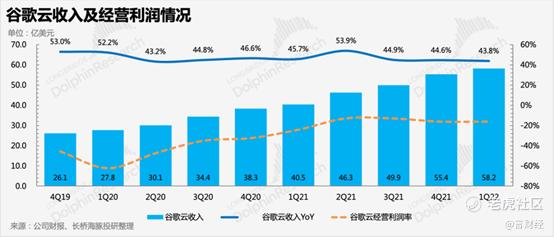 ▷谷歌的云业务,最新一个季度收入增速为43.8%