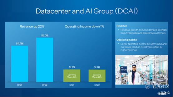 数据中心和AI的业务收入则表现良好,同比增长了22%。增长来自于大型和企业用户对Xeon芯片的高需求,也就是大型客户和企业客户对高性能计算的需求在增加,算力增加,流量增加,云计算的整体需求在增加。