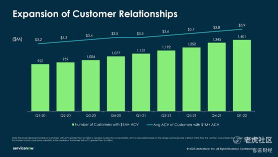 ServiceNow的收入增长,更多的是来自于超过1百万美元订阅收入的客户数量增加,以及支付的费用增加。这反应的一个趋势是大企业上云趋势不减以及云计算在企业的业务渗透还在进一步持续。
