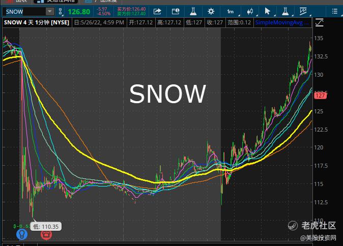 类似情况发生在巴菲特持股SNOW也公布财报,由于其明显的营收增速放缓,以及分析师也对其基于消费的商业模式表示担忧,昨天盘后大跌15%,开盘后立即冲高,单天一度满血复活,修复全部跌幅。可见抄底势头很猛。$Snowflake(SNOW)$