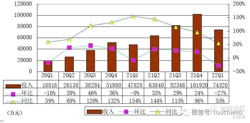 财报显示,知乎2022年第一季度营收7.432亿(约1.172亿美元),较2021年同期的4.783亿元增55.4%。
