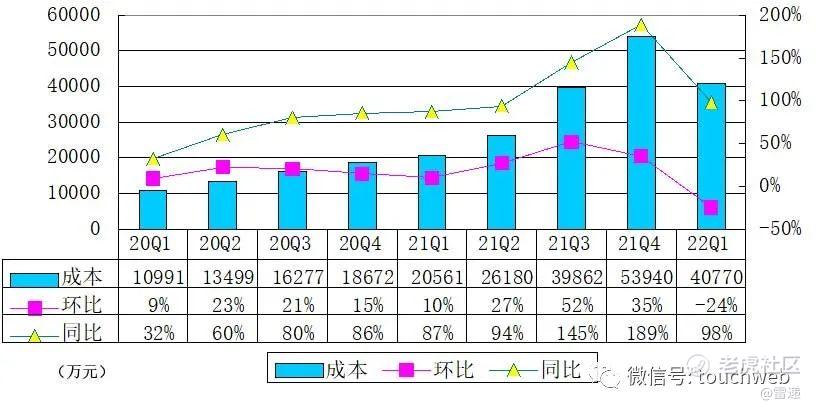 知乎2022年第一季度成本为4.077亿元(约6430万美元),较2021年同期的2.056亿元增长98%。