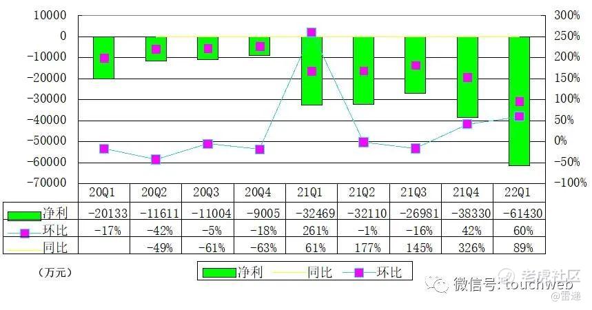 知乎2022年第一季度净亏损为6.143亿元(约9690万美元),而2021年同期净亏损3.247亿元。