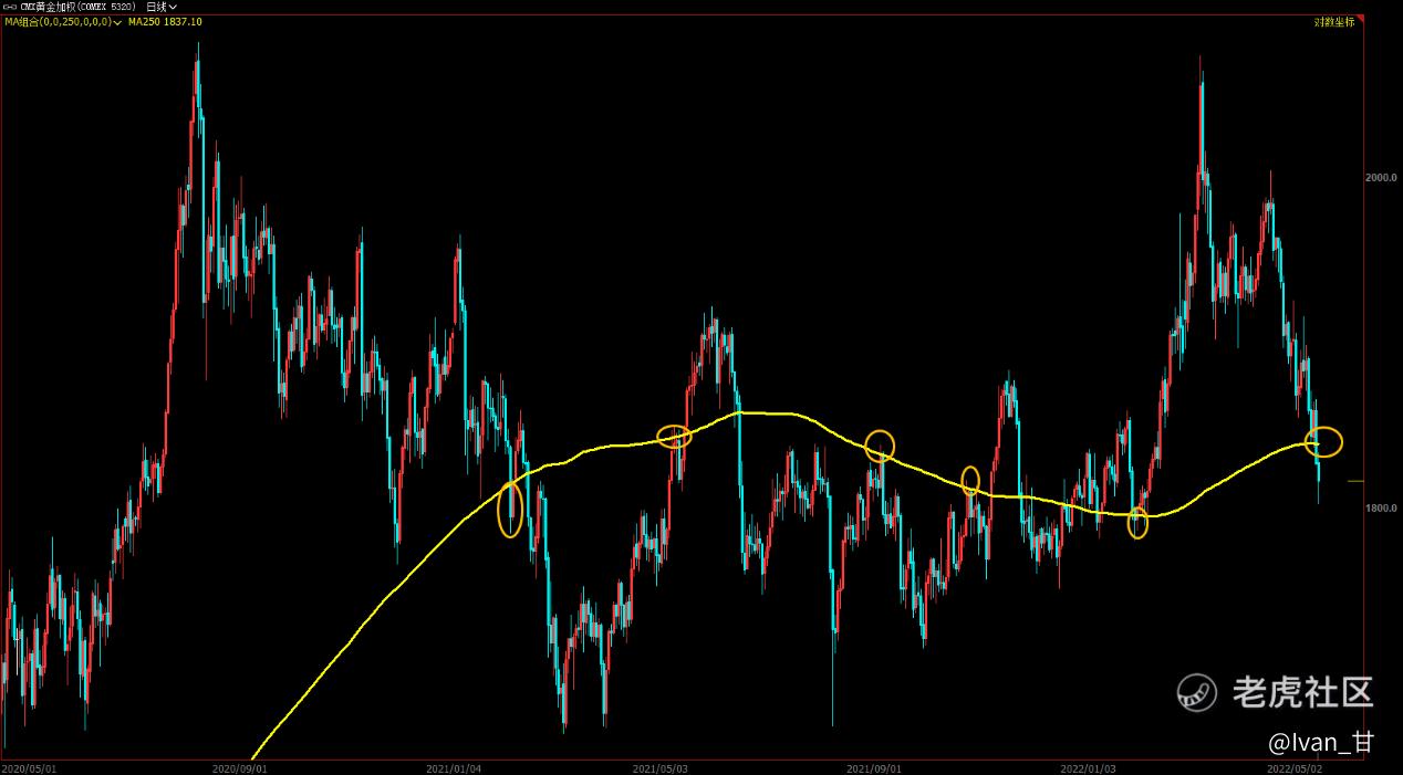 金价比预想还要弱,年线都支撑不了金价,跌破后,年线就成了压力位置,做多黄金的朋友要注意了。估计下周跌破1800后,会有所反弹,但1830/50附近的位置(年线压力位)已然是金价的重要压力位置。