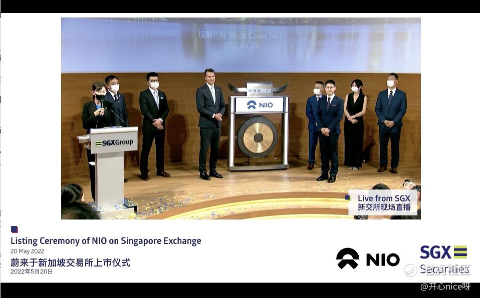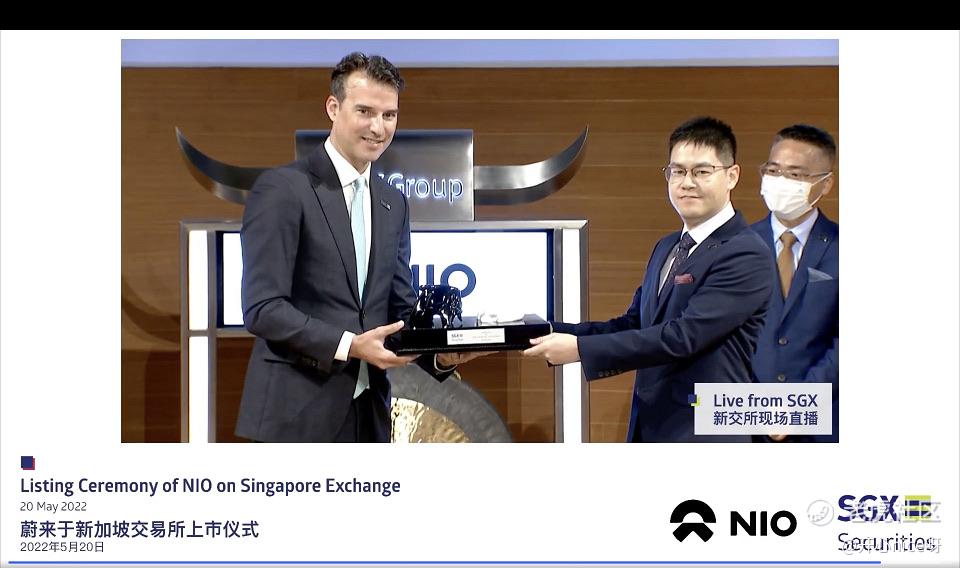 蔚来于5月20日正式以“NIO”为股票代码在新加坡交易所主板挂牌上市。2018年9月12日和今年3月10日,蔚来已先后登陆纽交所和港交所,这次的新加坡上市标志着蔚来成为全球首家在美国纽约、中国香港、新加坡三地上市的新能源汽车企业。