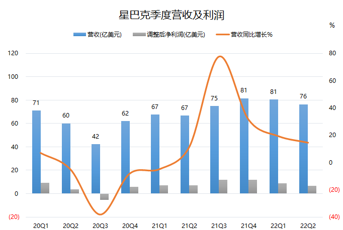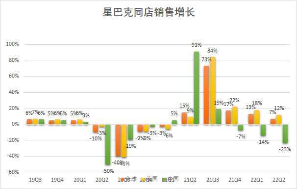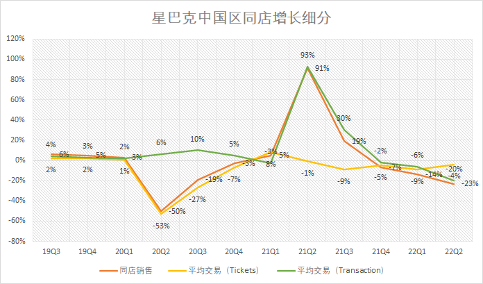 由于整体上,星巴克的业绩水平已经大致回到疫情前水平,因此,两年来计算的同店销售增长23.05%,低于预期的25.3%。