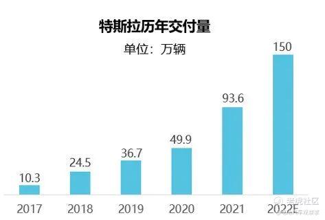 之后的2020年、2021年,特斯拉交付量分别逼近50万辆和100万辆关口,今年有望超过150万辆。在电动汽车的生产上,特斯拉的规模一骑绝尘,比第二名要领先很多。