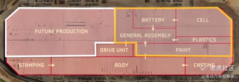 工厂讲究物流运输尽可能优化使路线最短,从而降本增效。但从加州工厂原有工艺布局来看,冲压车间到焊接车间,焊接到涂装,塑料零部件到总装车间的距离都比较远。这样的工艺布局显然是不合理的。