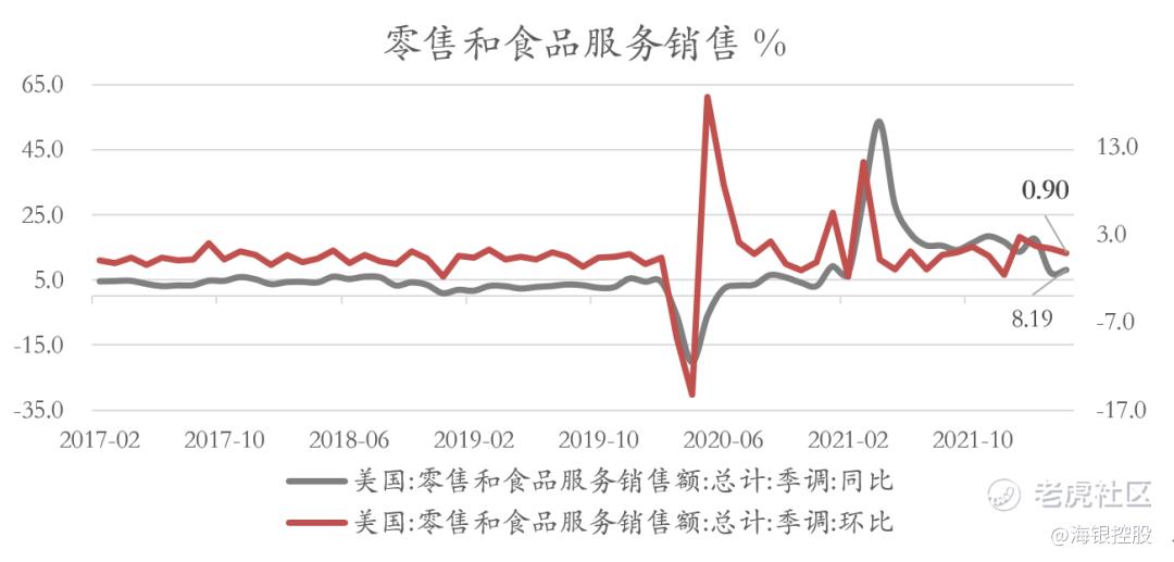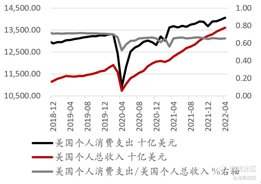 在通胀高企的情况下,薪资持续上涨带动了美国消费的增长。美国4月零售和食品服务销售同比增长8.9%和环比增速0.9%均高于疫情前水平。