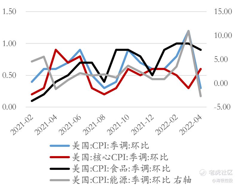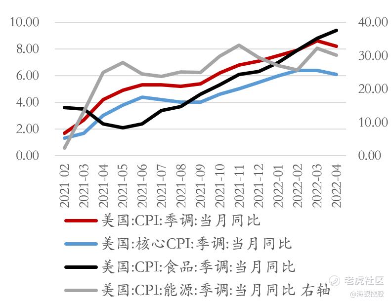 虽然美国当前通胀同比读数见顶,但通胀仍处于较高水平,且短期内仍将保持较高水平。