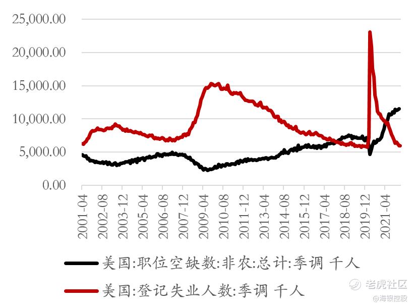 图表 7美国劳动力市场供给(失业人数)仍远小于需求(职位空缺)