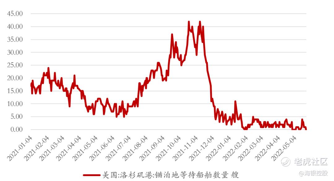 核心商品涨价幅度回落,供应链问题在下半年有望逐步缓解,未来对通胀抬升的作用有限。核心商品价格占在CPI中占比21.7%,核心商品价格同比回落,显示美国强劲的商品需求有所缓解,未来对通胀抬升的作用有限。另外,随着美国的运输工人的就业不断恢复,港口停泊积压的船舶数量有所下降,美国内陆运输压力有所缓解。