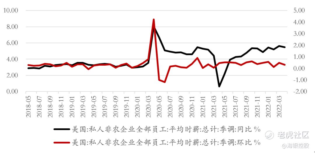 图表 14 美国4月平均时薪环比0.3%,同比5.5%
