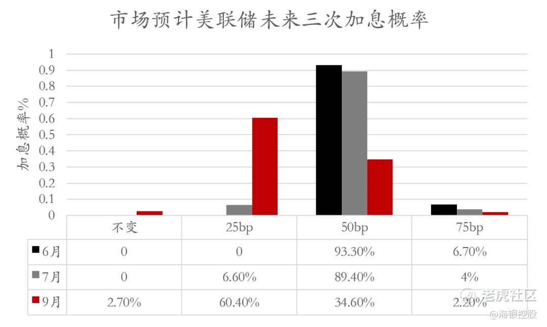 图表 20 市场预计美联储6、7月大概率分别加息50bp,但9月加息预期有所降温