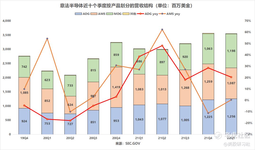 分产品组部门来看:汽车产品和离散组件部门(ADG)营收同比增长20.5%至12.56亿美元;模拟器件、MEMS和传感器部门(AMS)营收同比增长0.4%至10.87亿美元;单片机(MCU)和数字IC部门(MDG)营收同比增长35.2%至11.98亿美元;其他部门营收为500万美元,上年同期为400万美元。