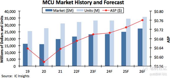 由于汽车供应链库存补充,加上汽车电气化和数字化转型,推动汽车市场需求持续强劲。据电话会,意法半导体全球MCU市占率远远超过20%(此前市场披露ST为全球第四大MCU厂商,市占率为14.5%,同时还是全球第三大功率半导体厂商和全球第九大电源管理芯片厂商)。