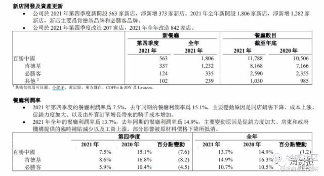 2月9日,肯德基、必胜客母公司百胜中国在港披露了2021年第四季度及全年财务业绩。