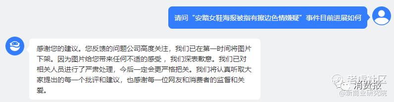 5月30日,安踏官方商城客服致歉称,已第一时间将图片下架,并对相关人员进行了严肃处理,今后一定会更严格把关。