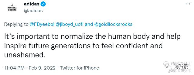 显然阿迪“赤裸裸”的胸部广告与其女性运动副总裁希望女性消费者分享更多打动人心的灵感和故事大相径庭。
