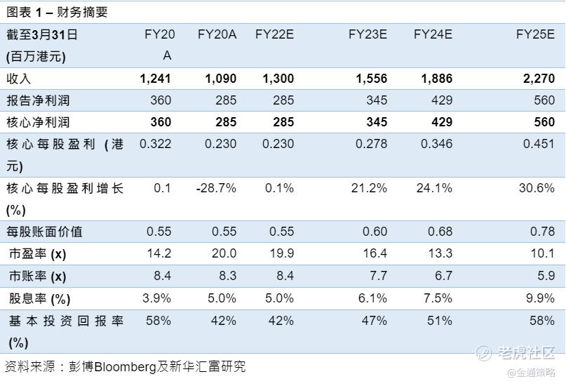 新华汇富认为,完美医疗已经从一家纤体和美容服务提供商,发展成为医疗美容和保健领域的领先企业。2021至2025财年期间,收入增长估计达20%的年复合增长率,净利润率超过20%。基于WACC(加权平均资本成本) 12.5%和永续增长2.5%的DCF(现金流量折现模型)计算,合理公平值为8.4港元。