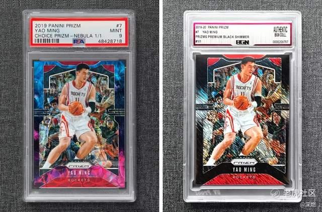李小白的两张姚明折射卡,单张价格超6位数人民币 / 受访者供图
