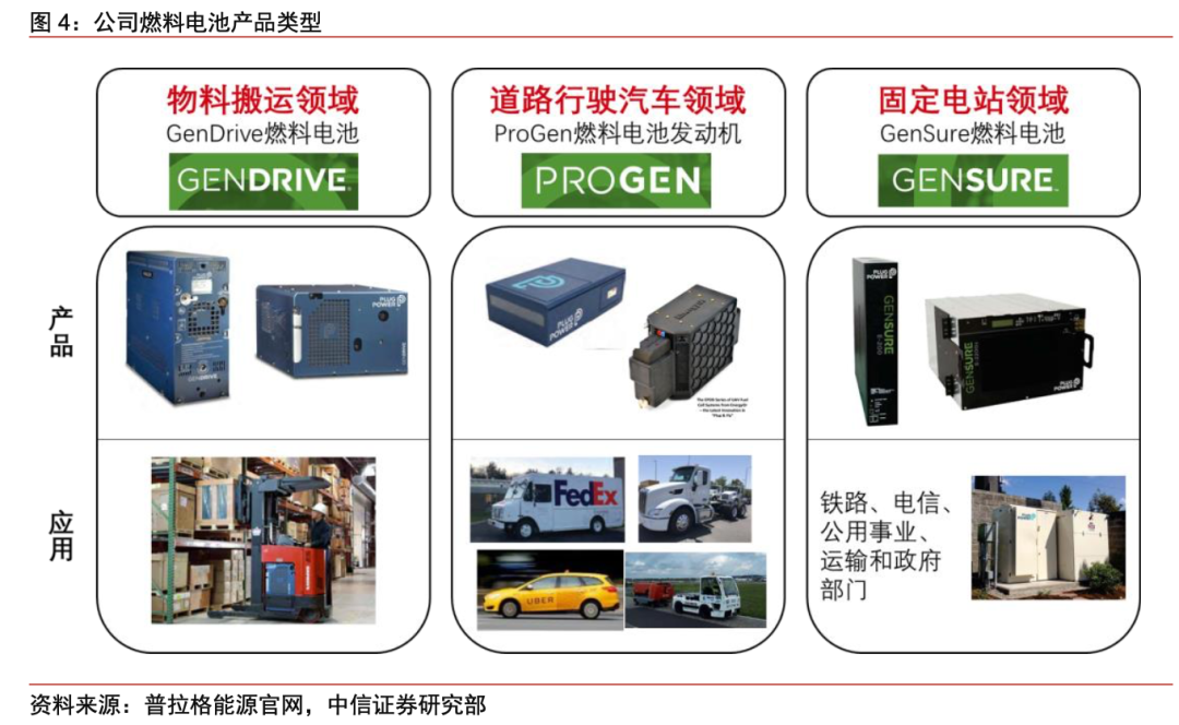 燃料电池:主要运用在商用车,比如公共汽车、汽车、火车、叉车、卡车,并为它们提供加氢服务。