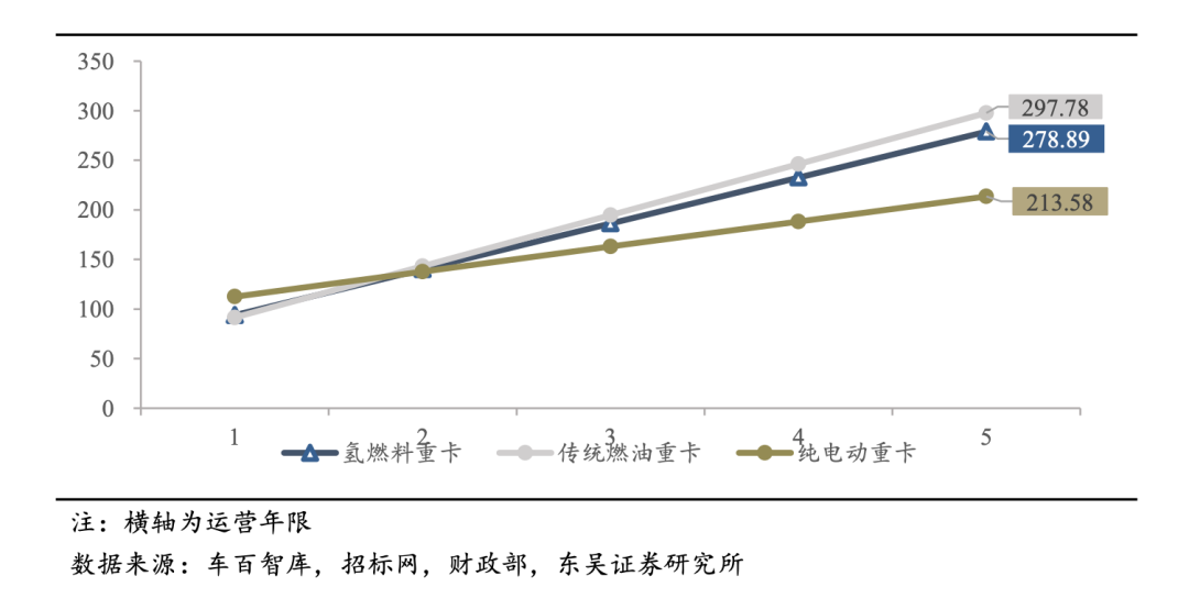 不同类型重型卡车全生命周期累计现金流出(东吴证券)