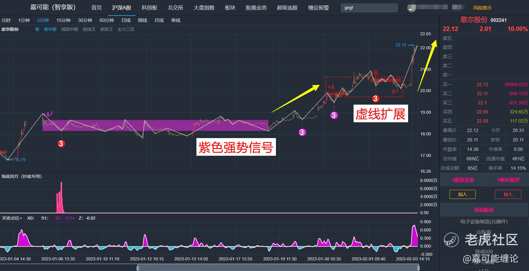 【嘉可能】歌尔股份主力流入,短线缠论强势信号!
